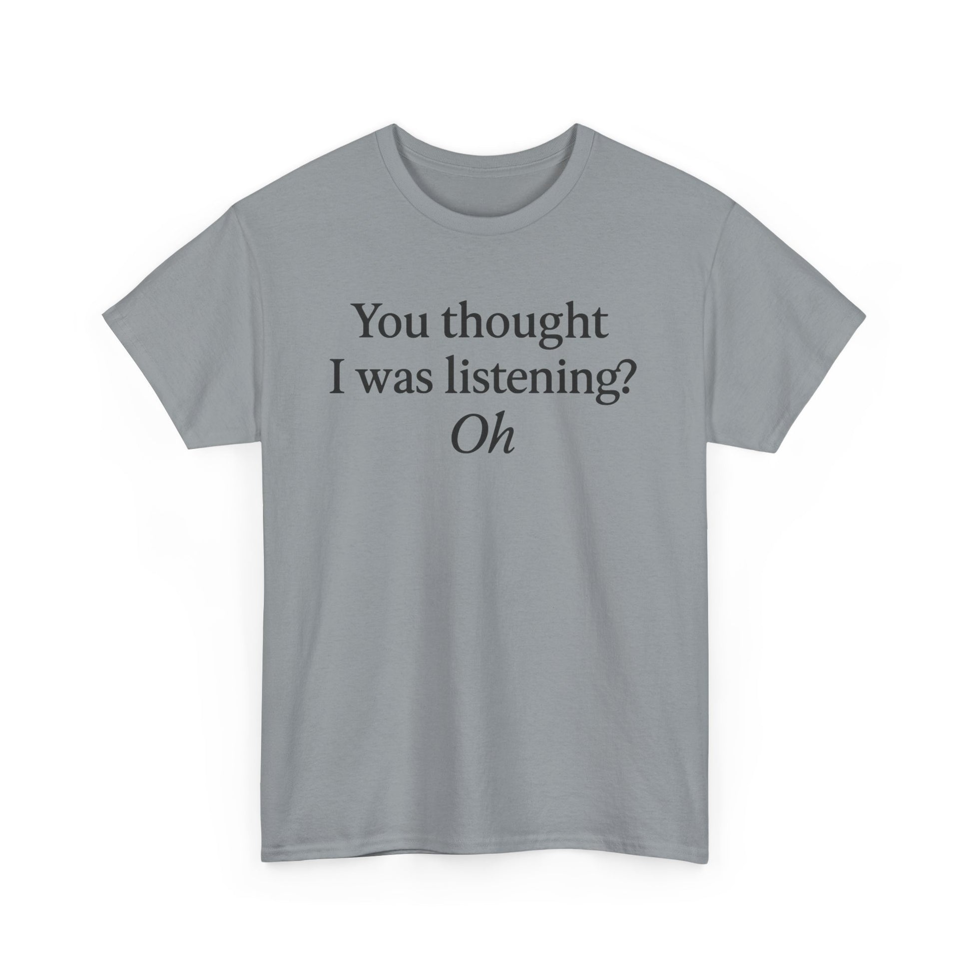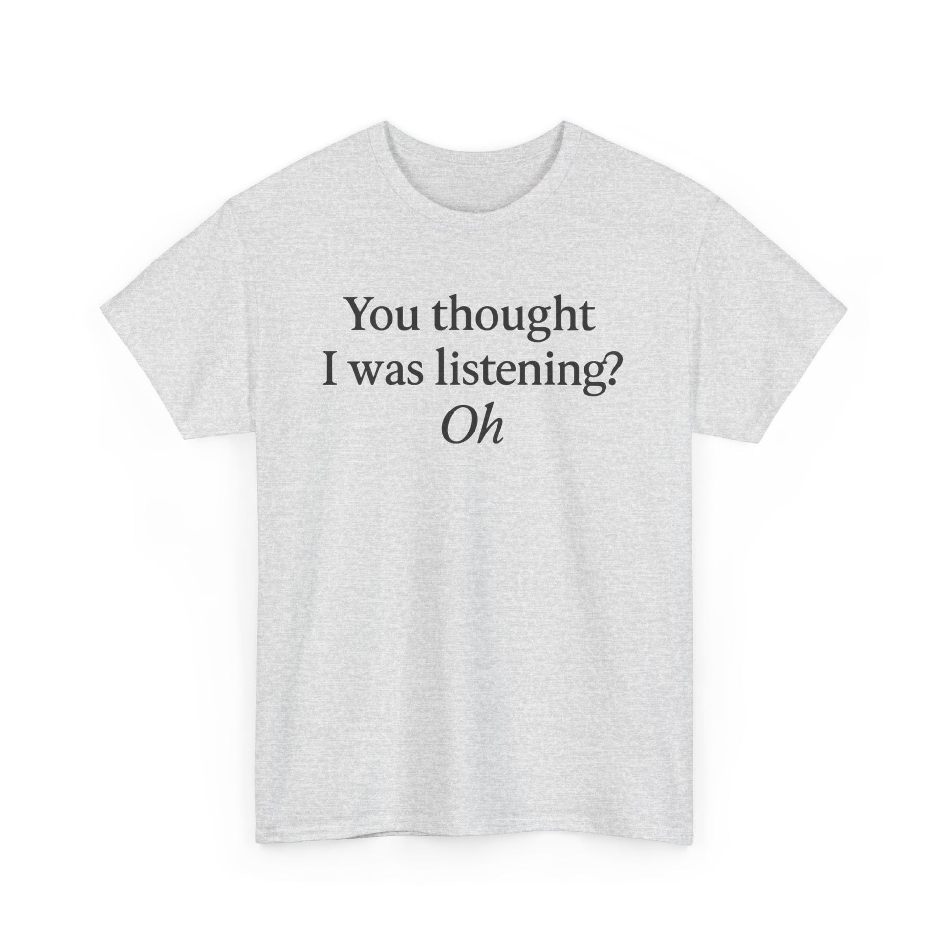 Introducing a comfortable and stylish Unisex Heavy Cotton Tee, perfect for expressing your personality and sense of humor. This tee features a playful quote that brings a lighthearted vibe, making it a fantastic addition to your casual wardrobe. Whether you're lounging at home, hanging out with friends, or attending a casual gathering, this t-shirt fits seamlessly into your lifestyle. Ideal for adults who appreciate comfort and a touch of wit, it is perfect for gifting on occasions like birthdays, holidays, or just because. Add a dash of fun to your everyday look and show off your unique style!